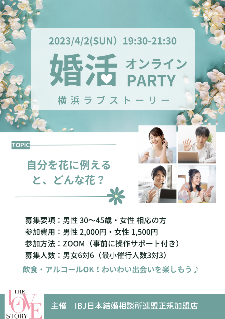 4月前半の婚活パーティーは横浜ラブストーリーをオンラインで開催いたします!