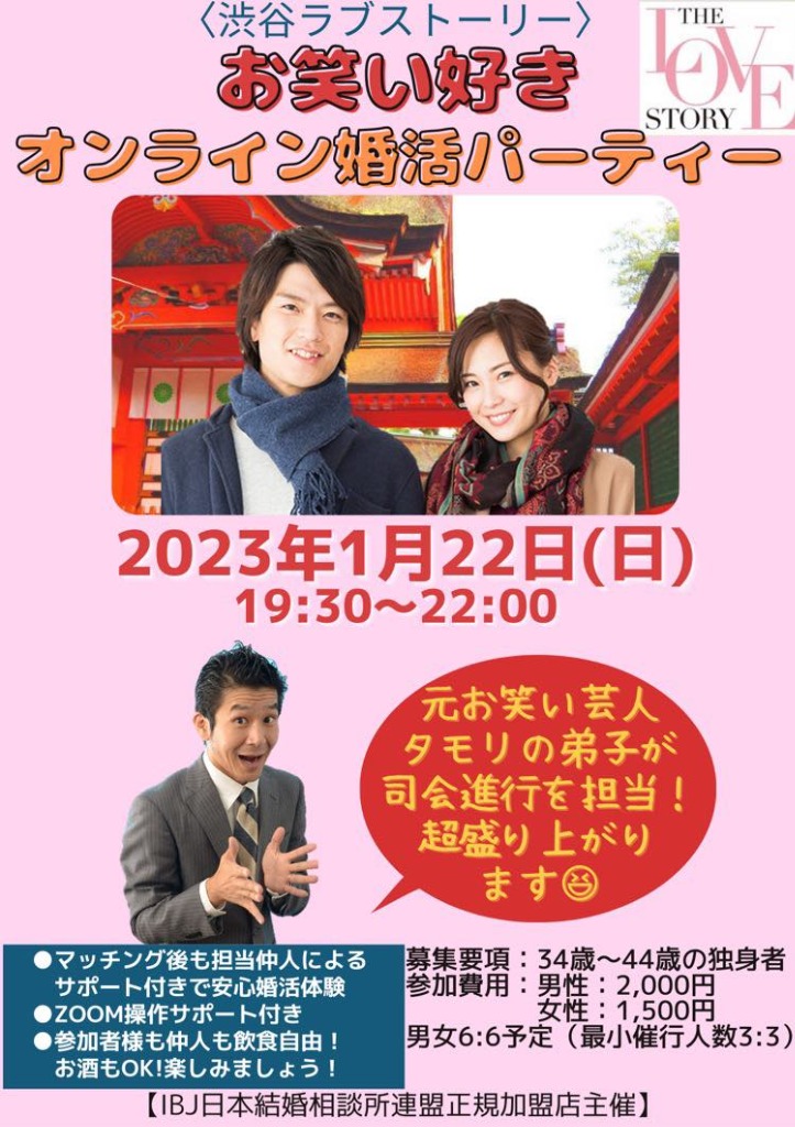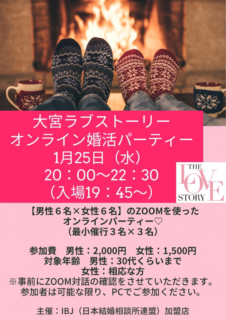 1月後半は渋谷ラブストーリー&大宮ラブストーリーをオンラインで開催!IBJ(日本結婚相談所連盟)加盟店の仲人が真剣な出会いをプロデュースいたします♪