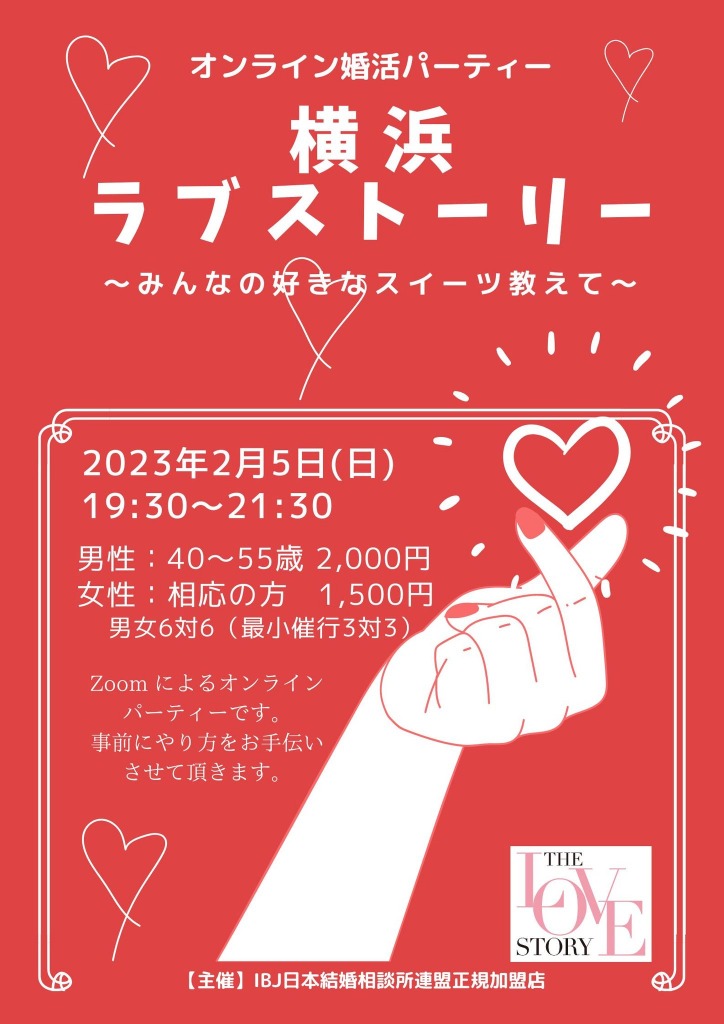 2月前半は横浜ラブストーリーをオンラインで開催!IBJ(日本結婚相談所連盟)加盟店の仲人が真剣な出会いをプロデュースいたします♪
