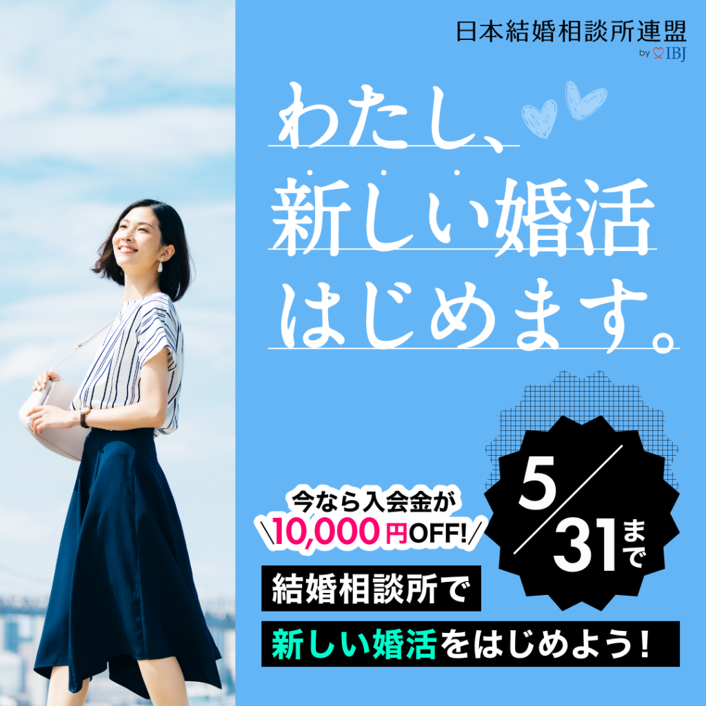 当社が加盟しているIBJ(日本結婚相談所連盟)では、2022年3月の月間お見合い件数が『5万件』を突破しました!最近では対面のお見合いだけでなくオンラインお見合いも増えているので、「職業柄対面では会い辛い」という方も安心して婚活をして頂けます。GWは婚活が活発になる1週間。ぜひこのタイミングを逃さないでくださいね!